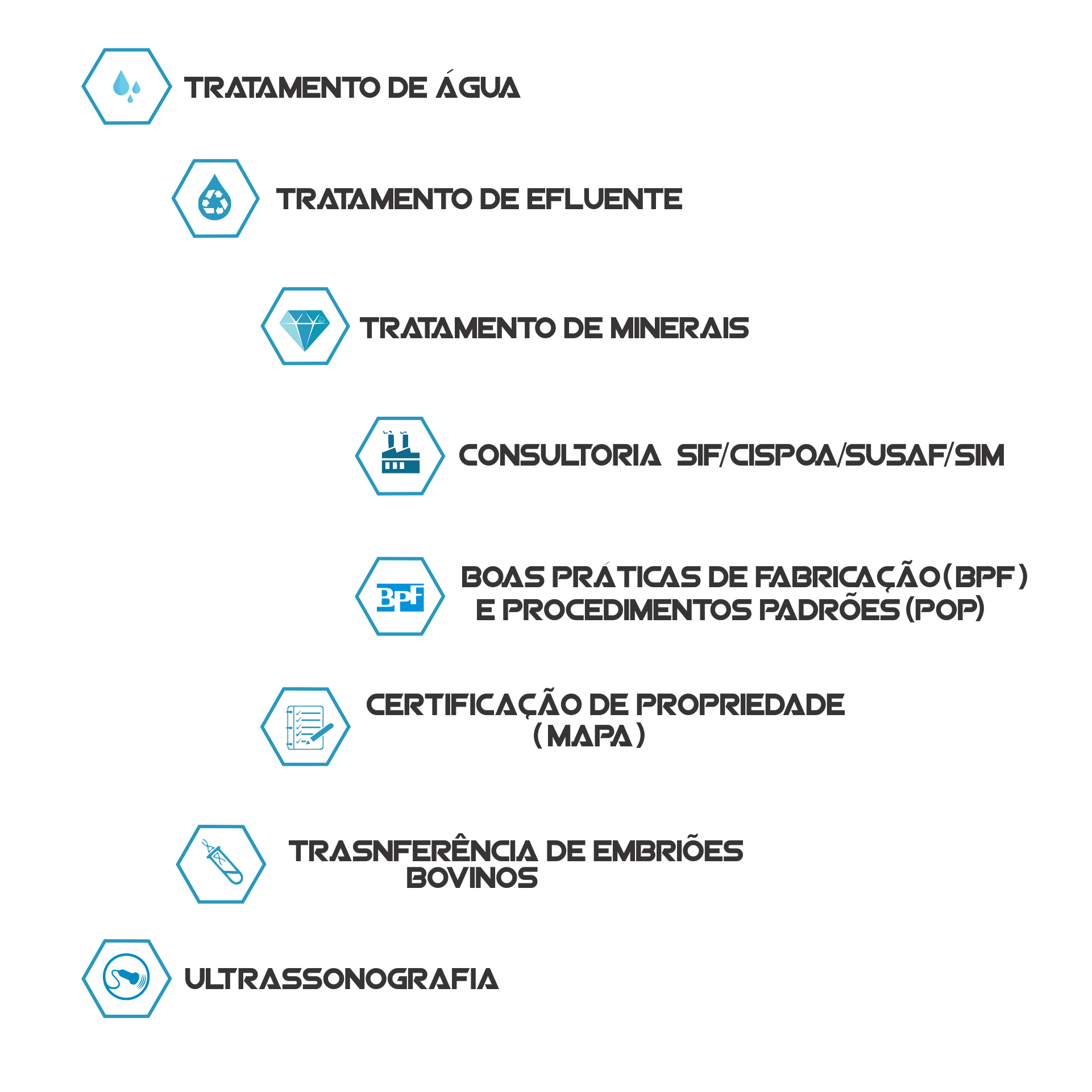 Assim, atuamos no setor industrial de forma diferenciada, visando a replicação e otimização dos processos de produção, tratamento de ágatas e cristais, tratamento de efluentes e tratamento de águas de processo.